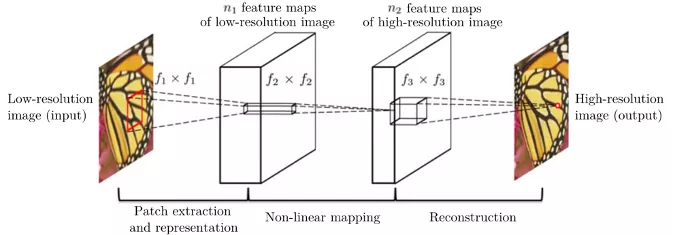 随着深度学习技术的发展,将低分辨率图像进行处理,得到一张高分辨率图像,同时恢复出自然、清晰的纹理,就是我们常听到的超分辨率技术,往往针对较高倍数的缩放,如4倍8倍缩放等。经典的图像超分算法SRCNN,首次将卷积神经网络应用于图像超分辨率技术,相较于传统的算法,SRCNN在图像的重建质量上取得了极大的提升。与传统方法类似,它实际上也是利用低分辨率图像对空缺信息进行填补,从而提高分辨率和质量。在学习阶段,有同一幅图的高分辨率和低分辨率两个版本,输入低分辨率图,通过CNN网络后,输出高分辨率图像,同时与原有的高分辨率图进行对比,更新迭代下一次的学习,最后得到的CNN网络,就可以用来恢复低分辨率图像。如图3所示,首先将低分辨率图输入到网络,经过特征提取、非线性映射、重建等步骤,输入高分辨率图像。SRCNN之所以比传统网络更加优秀,是因为它即通过对低分辨率图像的特征进行学习和提取,针对不同的纹理特征,然后根据特征的不同,从而可以更加合理地进行高频信息的生成。